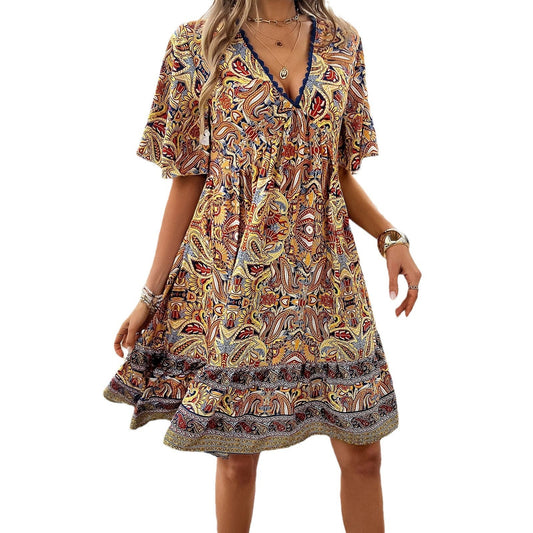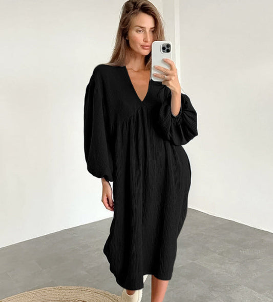 Women's V-neck Backless Loose Wide-leg Jumpsuit