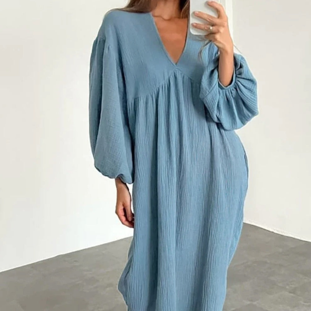 Affirmez votre style avec cette robe longue à manches bouffantes